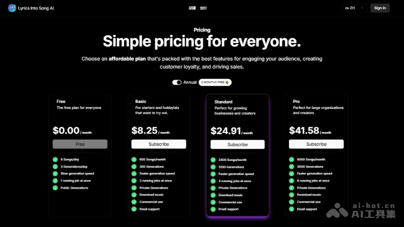 Lyrics Into Song AI的产品定价